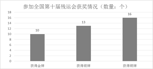 积极组队参加2019年天津全国第十届残运会暨第七届特奥会,取得了较好成绩。在全国第十届残运会残奥听奥项目上,共获得了6枚金牌、11枚银牌、12枚铜牌。在全国第十届残运会群众比赛上,共获得了4枚金牌、2枚银牌、4枚铜牌。在全国第七届特奥会上,共获得了14枚金牌、15枚银牌、17枚铜牌。打破两项全国纪录。
