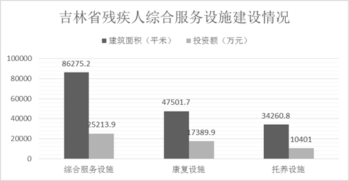 截至2019年底,已竣工的各级残疾人综合服务设施47个,总建设规模86275.2平方米,总投资25213.9万元;已竣工的各级残疾人康复设施11个,总建设规模47501.7平方米,总投资17389.9万元;已竣工的各级残疾人托养服务设施12个,总建设规模34260.8平方米,总投资10401.0万元。